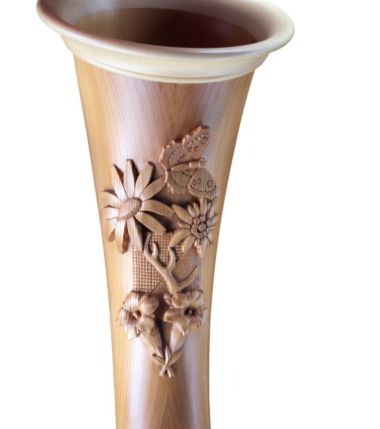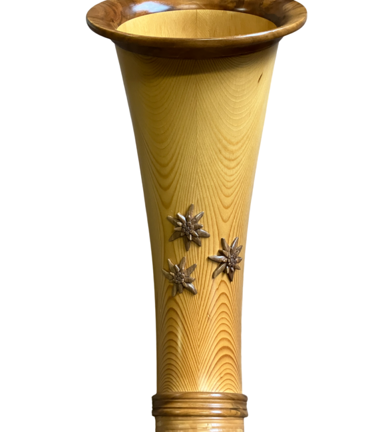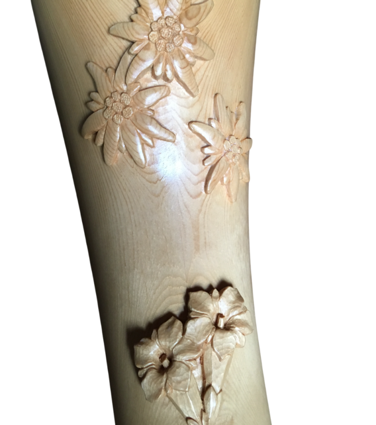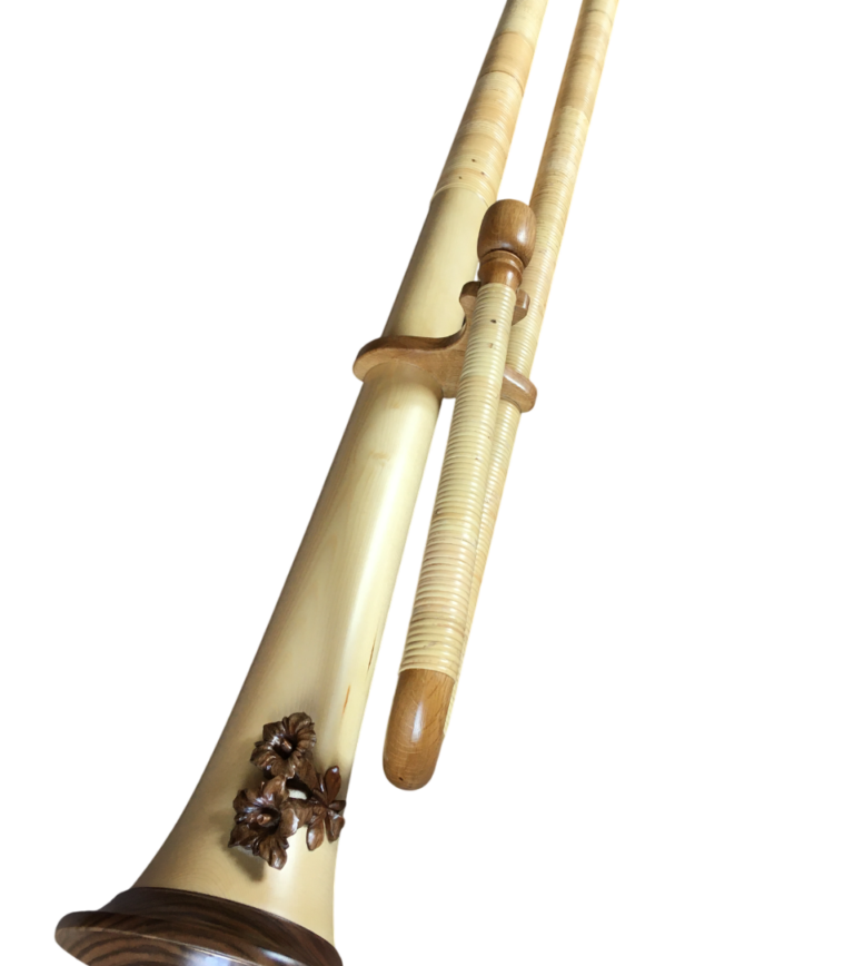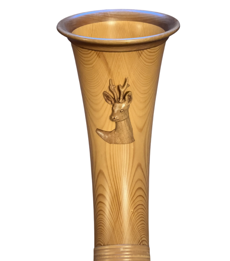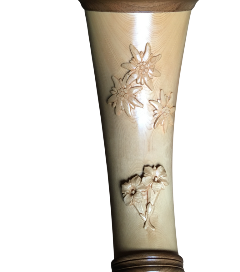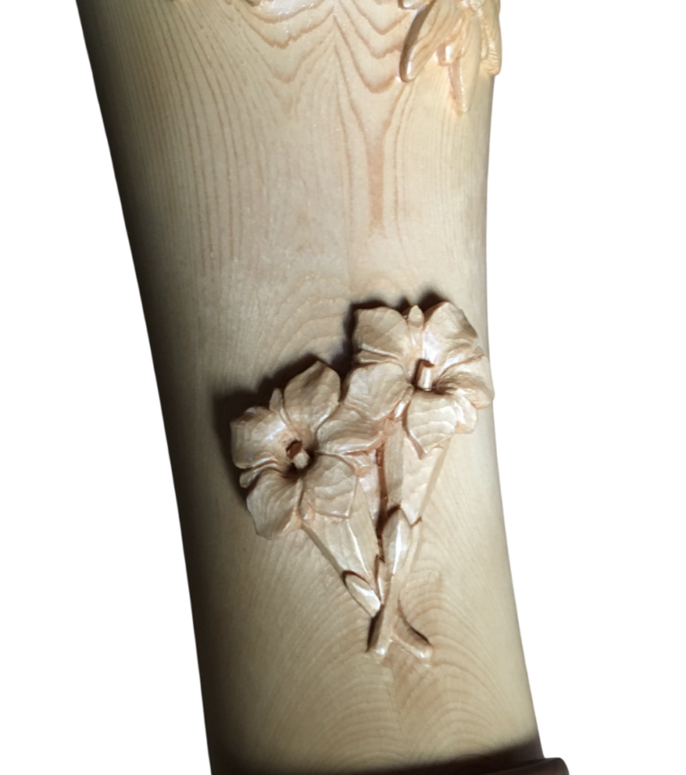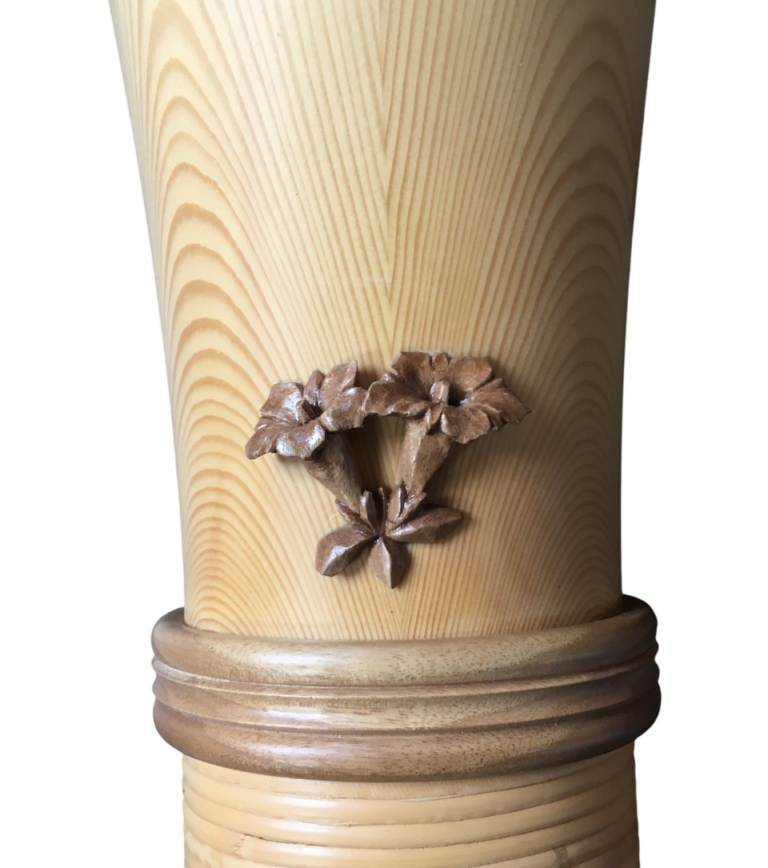 Dans la masse du pavillon, ou alors en applique par après, les magnifiques sculptures de l'artiste subliment votre instrument pour un rendu somptueux. Prix sur demande en fonction du projet.