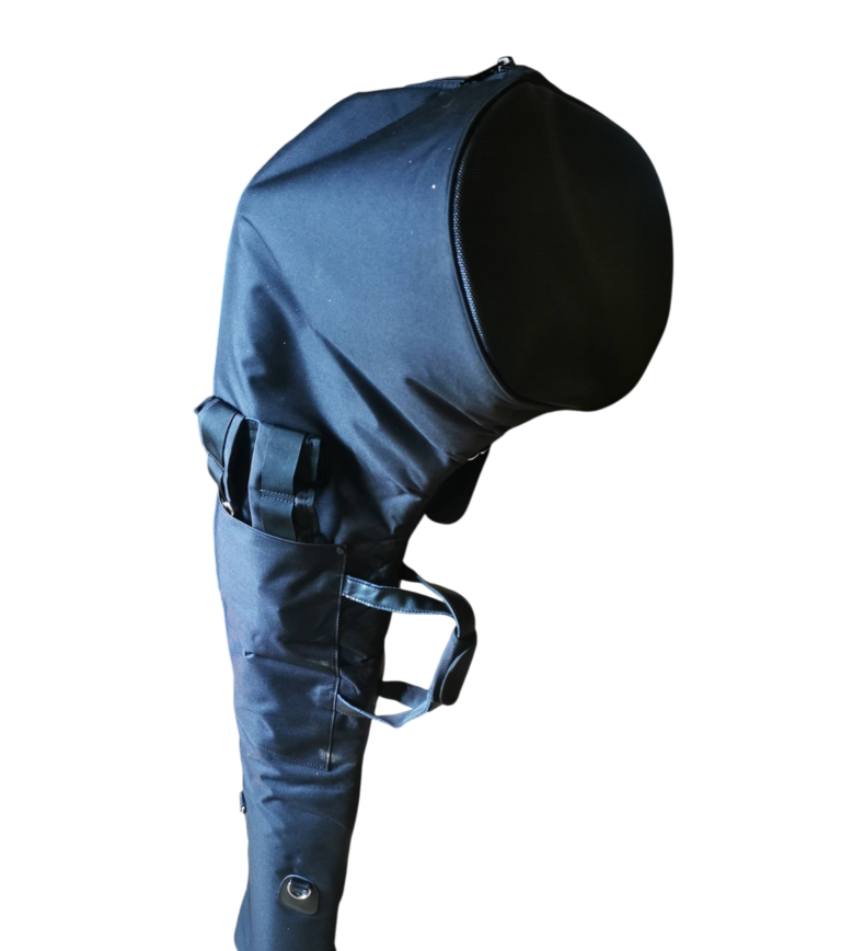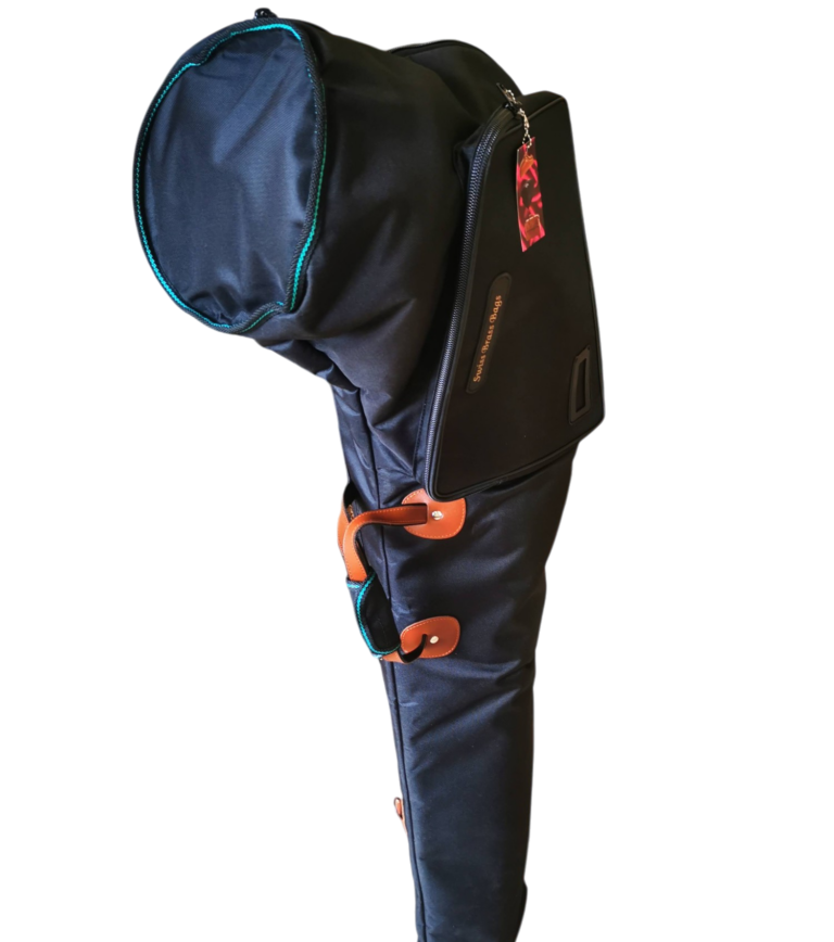 Disponible en différents coloris selon le stock. Avec poignée et bretelles "sac à dos". Dimensions avec instrument ; 110cm x 50cm x 30cm.