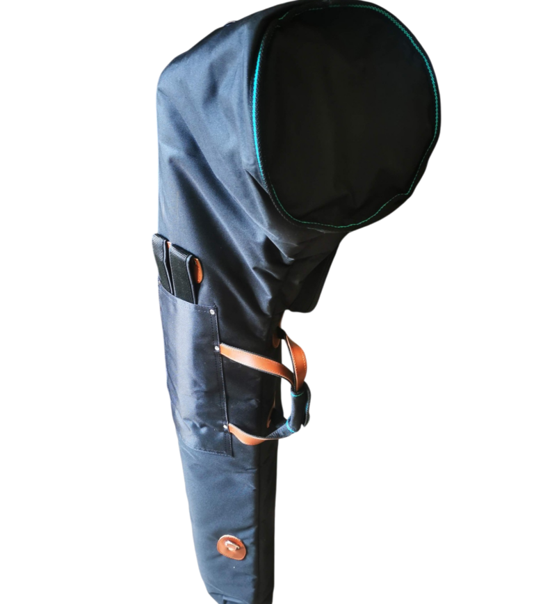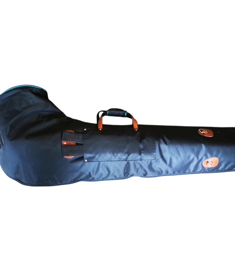 Disponible en différents coloris selon le stock. Avec poignée et bretelles "sac à dos". Dimensions avec instrument ; 135cm x 50cm x 30cm.