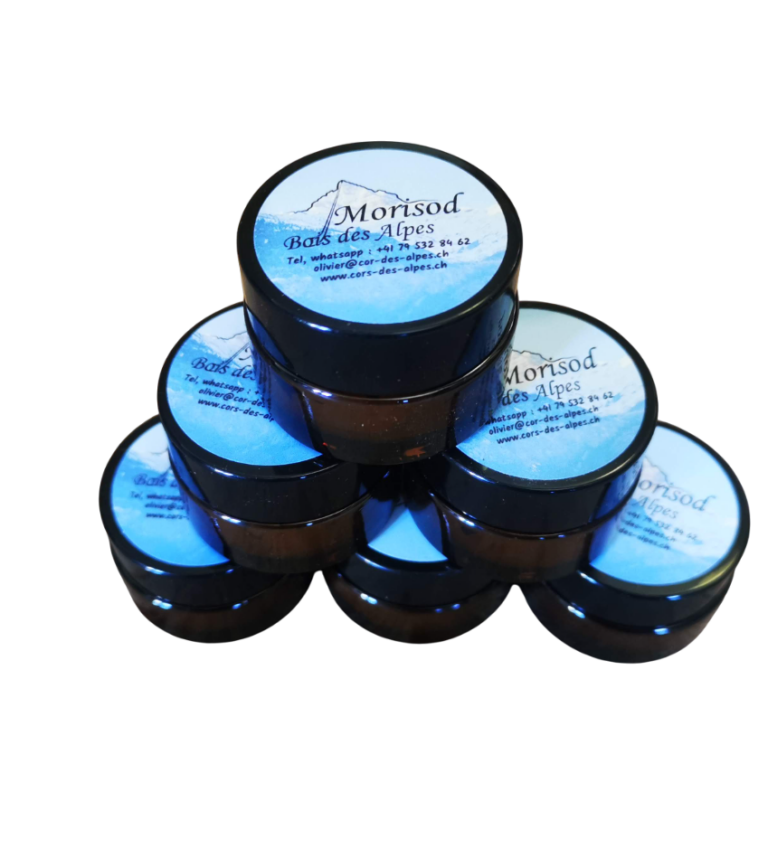 Ces petits pots en verre de 4cm de diamètre sont très pratique, en effet la graisse est primordiales pour l' entretient du cor des alpes, c'est en l'appliquant régulièrement sur les raccords de l' instrument qu'il reste facile à monter et démonter.